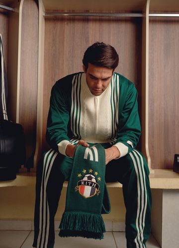 Athleisure-Wear ist tatsächlich eines der größten modaerischen Phänomene auf der Szene. Diese Stilrichtung kombiniert lässige Sportkleidung mit eleganteren Freizeitsoutien. Im Kontext davon passt auch die neue Partnerschaft zwischen adidas und Kith genau zum richtigen Zeitpunkt erschienen. Die zwei Marken haben ihre Energien nun für eine gemeinsam gestaltete Fußball-Kollektion vereint, welche nicht nur entspannte Kleidung sondern auch Zubehör und Schuhwerk bietet. Es sind sieben Jahre vergangen, seit ihrer letzten Zusammenarbeit. Was uns betrifft, so war der Wartezeit definitiv Wertigkeit innegelegt worden. Also sollten sie dies bald erneut tun!