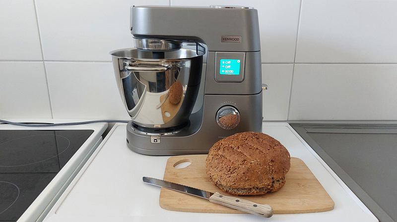Der Kuchen-teigttest war erfolgreich bei der Kenwood Titanium Chef Patissier – wie steht es nun beim Broteigte? Dazu werde ich den Vorgang testen, indem ich einen etwa 2,5 Kilogramm schwergewichtigen Teig zubereite für ein Sonnenblumenkern-Brot .